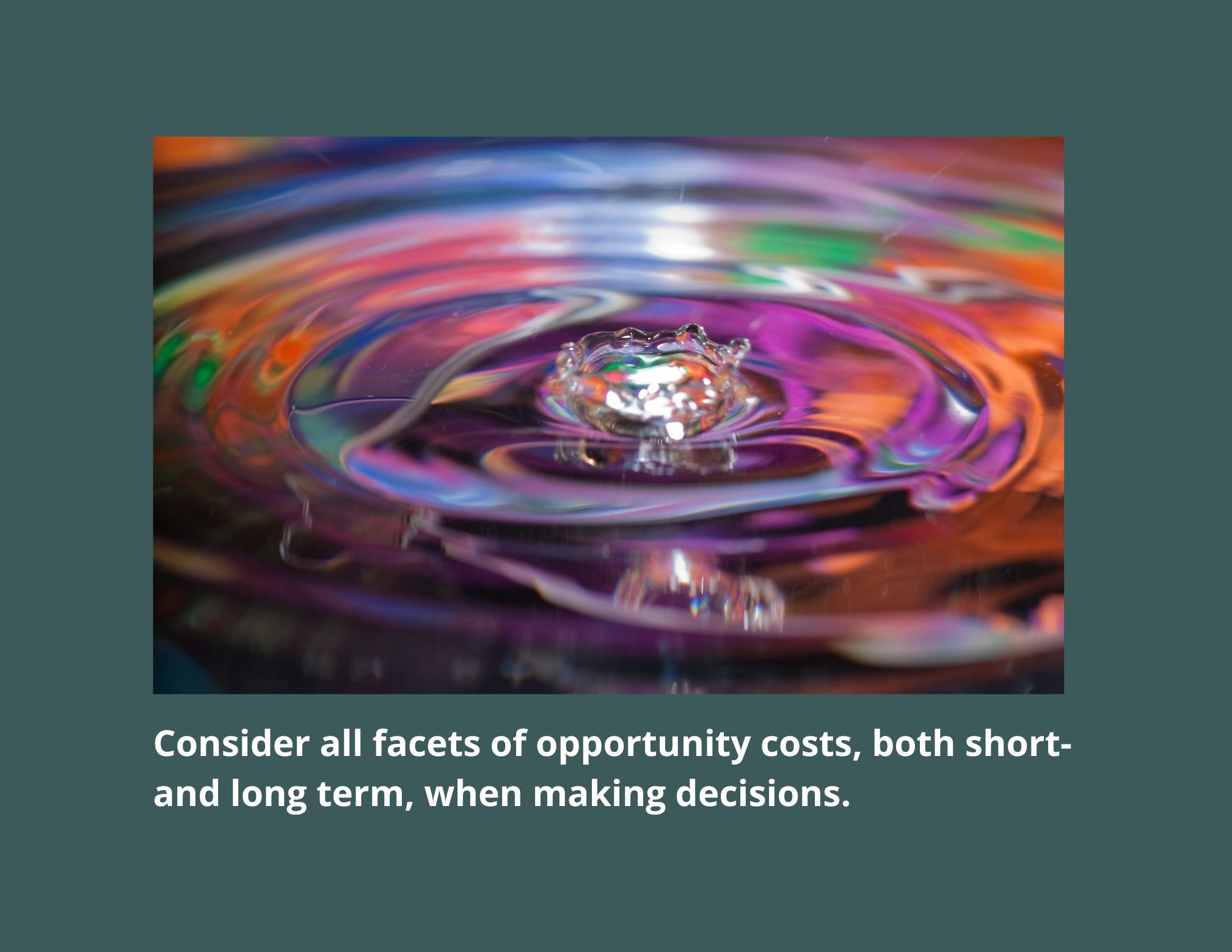 Opportunity cost is the value of whatever you’re giving up when you choose one path over another. It’s not just about dollars—it’s about time, energy, valuable experiences, and long-term results. It considers what you’re sacrificing now (and potentially in the future) for the chosen path, one that might offer more enjoyment, fulfillment, or flexibility, but could come also with a less predictable and lower return.